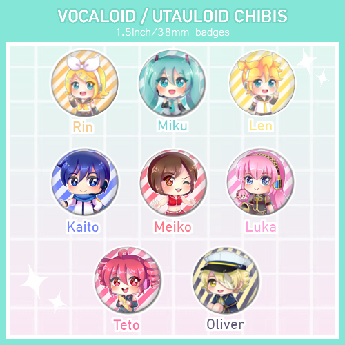 Vocaloid and Utauloid chibi 1.5'' / 38mm diameter circular badges / buttons