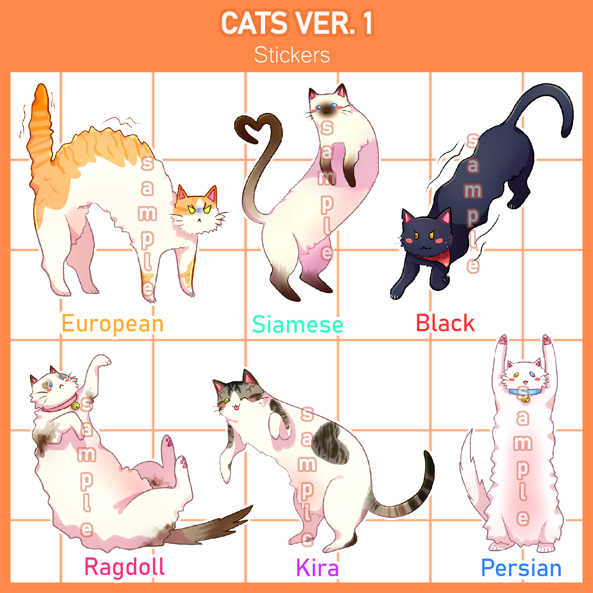 Cute Cats version 1 (7,5x8cm/2.95x3.15inch) stickers