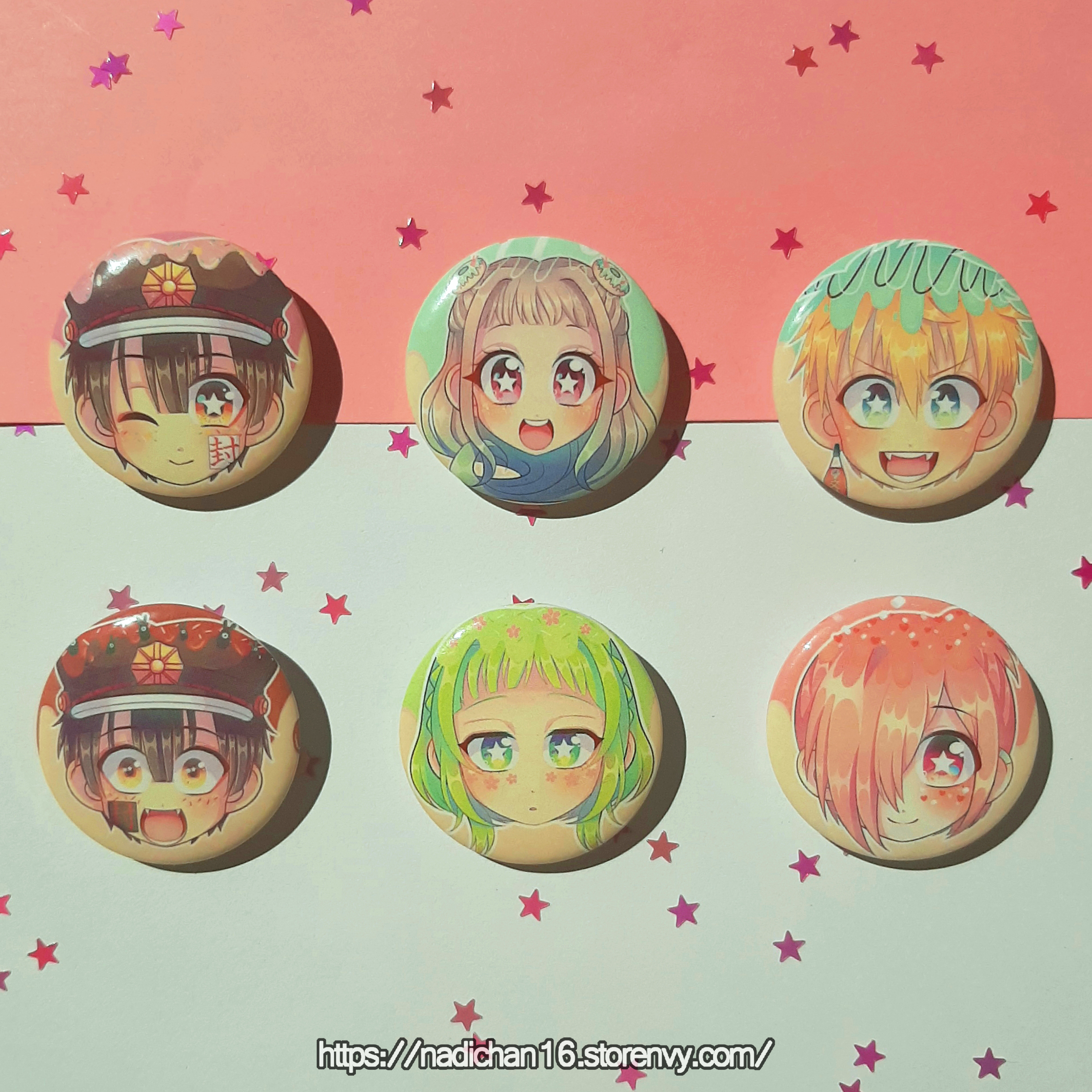 Toilet Bound Hanako-kun Pastel Donut 1.5'' / 38mm diameter circular badges / buttons.