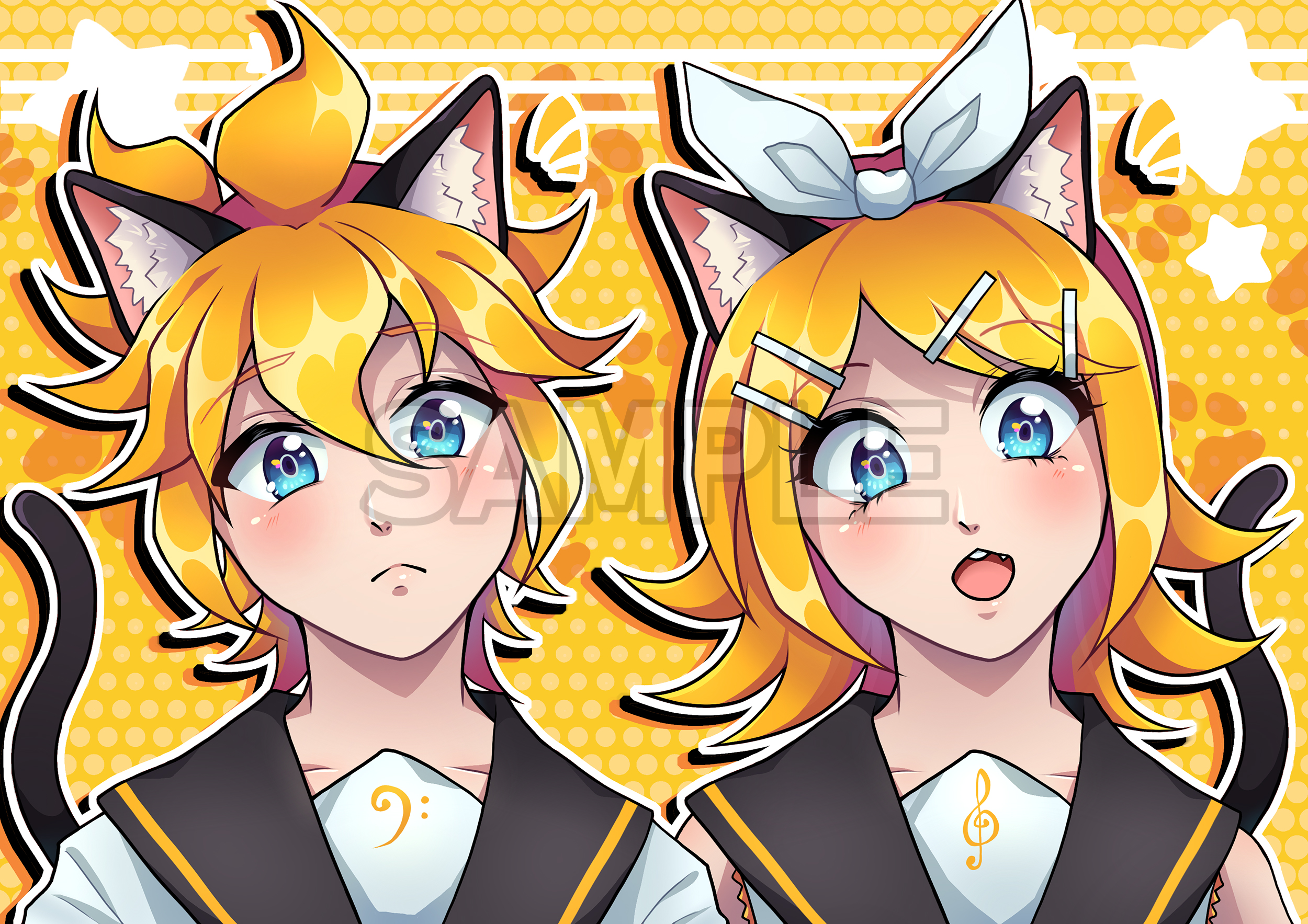 Vocaloid Kagamine Twins Nekomimi Switch A5 print.